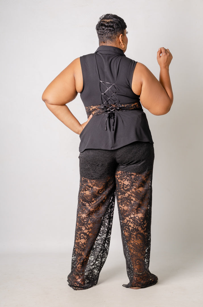 Kendra Lace Pant Set - Black