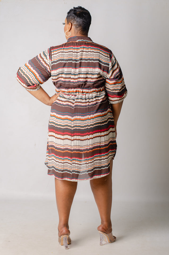 Details: Printed shirt dress with cinched back and pockets. Half sleeves with epaulettes and slit sides.